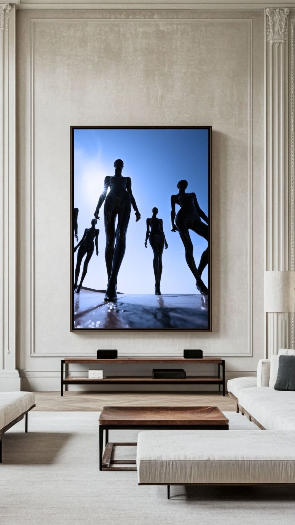 Draped in reflective textures and glimmering embellishments, these figures embody the balance of power and grace.