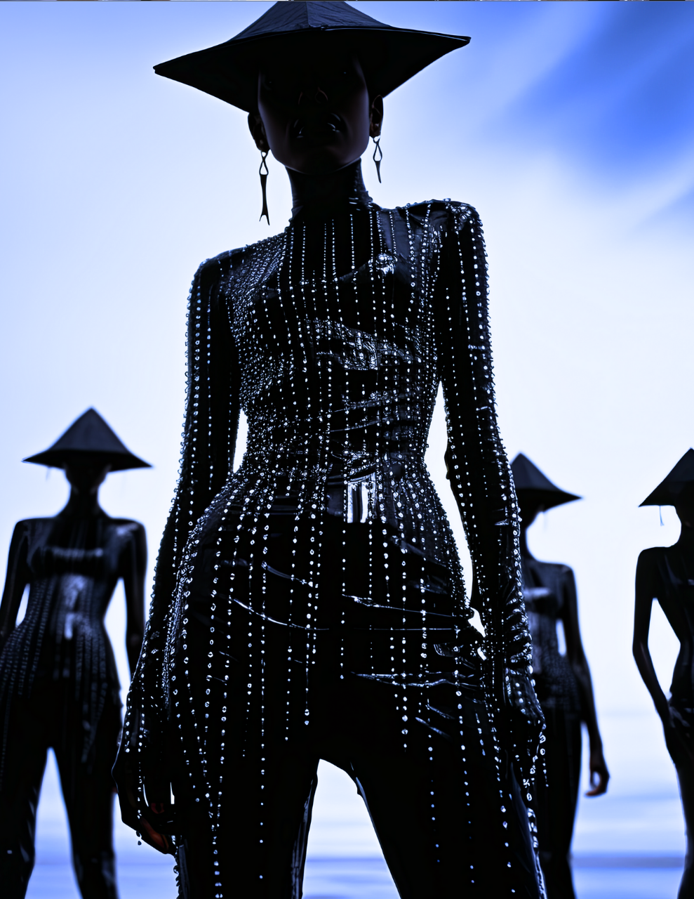 Draped in reflective textures and glimmering embellishments, these figures embody the balance of power and grace.